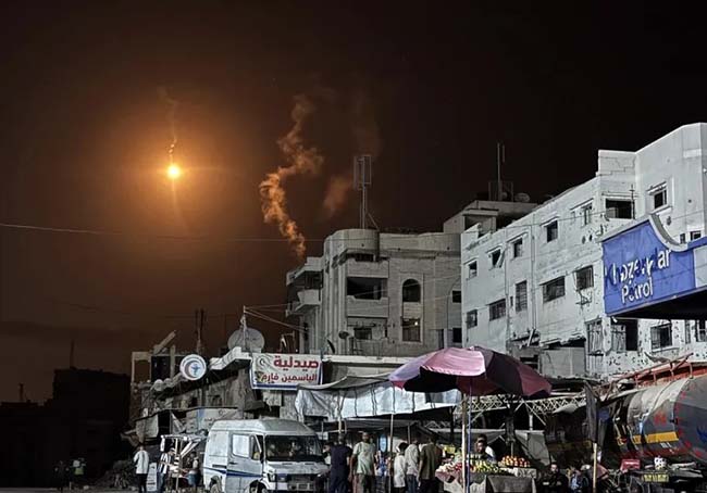 9月23日,以色列士兵在加沙城上空發射照明彈 (阿納多盧通訊社)