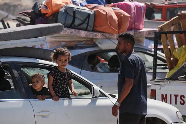 襲擊發生之際,逃離加沙城猛烈轟炸的流離失所的巴勒斯坦人繼續向南尋求避難。