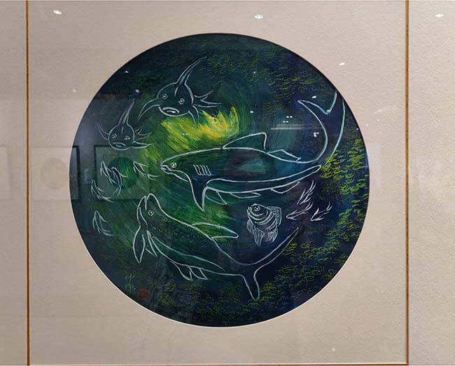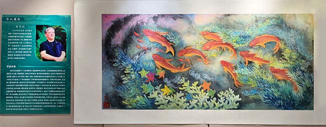 展覽以“自然的歌者”為主題,幾位退休藝術工作者,以跨越數年的創作長跑,將對藝術的赤誠熔鑄於筆墨,為觀眾揭開一場“時光與熱愛共生”的精神盛宴。展廳中,每一幅作品都是他們與時間賽跑的見證,每一段創作故事都藏著暮年藝術家的熱血與哲思。值得關注的是,曾仲作先生帶來的海洋生物重彩畫,以海洋生物畫為基,以“破舊立新”的思想為經,以中西方藝術語言的融合為緯,以不斷創新的技法為軸,將獨創的重彩語言表達出來。