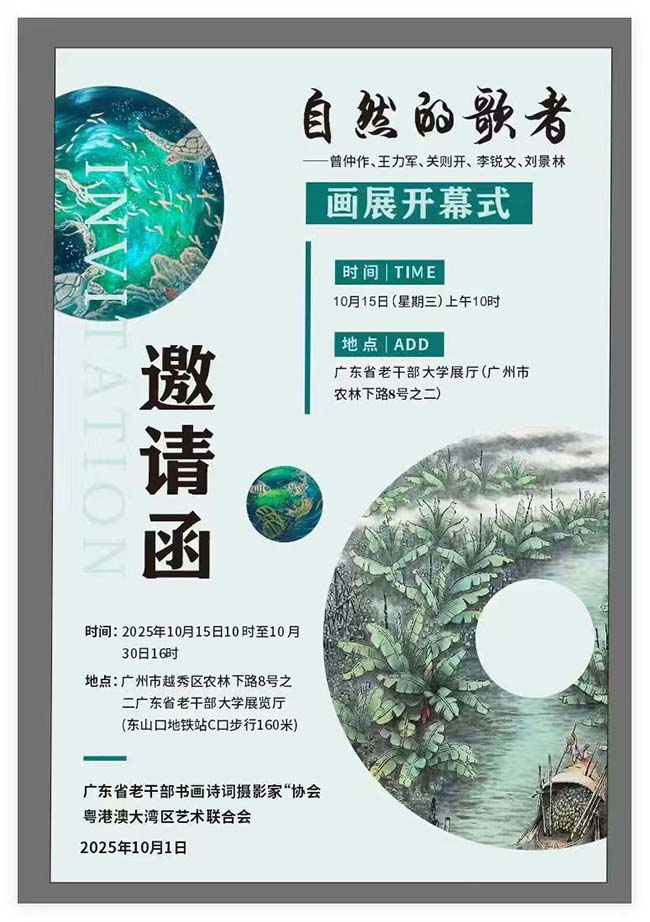 主辦單位:廣東省老幹部書畫詩詞攝影家協會、粵港澳大灣區藝術聯合會