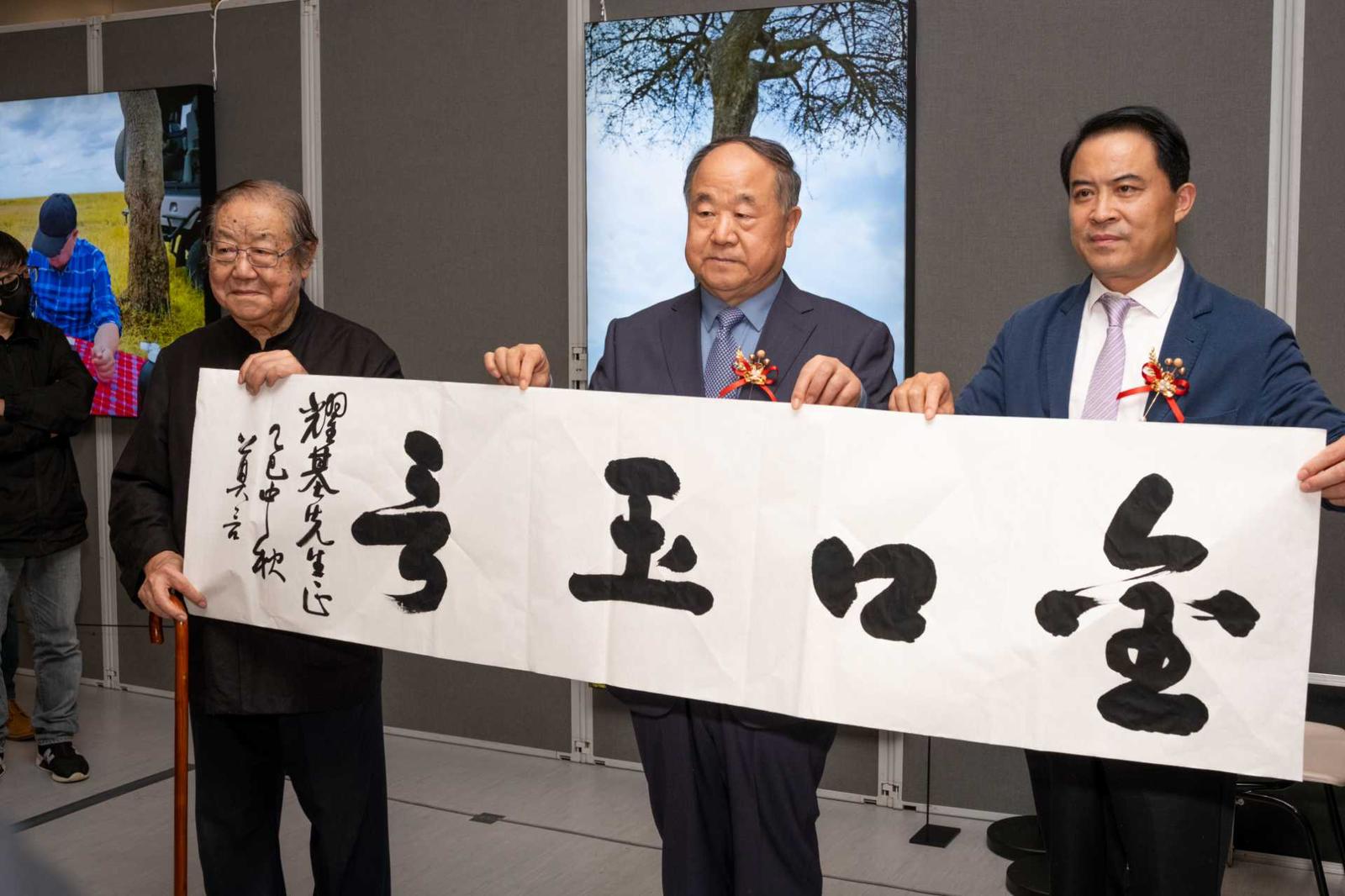 開幕尾聲,莫言即書「金口玉言」致獻金耀基,王振以「茶禪不二」呼應展題。三幅即興墨寶將於閉幕週特設「喫茶墨陣」壓軸展出。