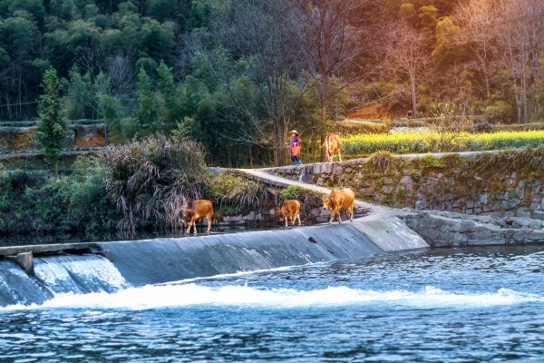 作品說明:這次參賽作品《暮歸》系我2023年3月28日去黃山市休寧縣蓀田村拍油菜花收工時巧遇一村婦趕著4頭牛回家,我站在河邊抓拍到這一場景。我很喜歡田園風光的片子,能遇到4頭牛排隊走在河堤上真是一幅美不勝收的畫面!