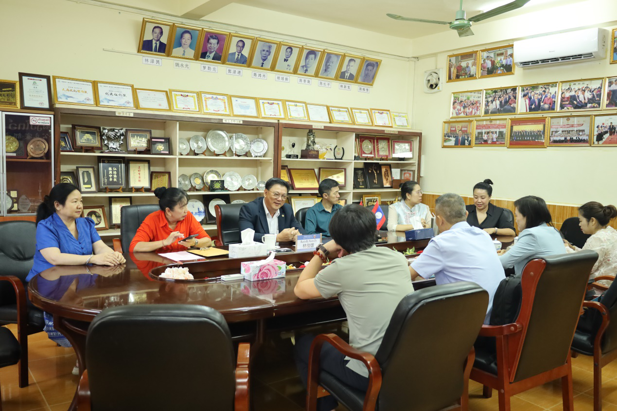 寮都公學董事長林俊雄先生攜學校主要領導團隊對暨南大學訪問團表達了熱烈的歡迎。雙方隨後進行了座談交流,重點圍繞招生合作事宜、老撾當地學生赴華深造的指導與支持等議題展開了深入探討。雙方均表示,此次交流將有助於實現教育共贏,並就未來的教育合作達成了積極共識。