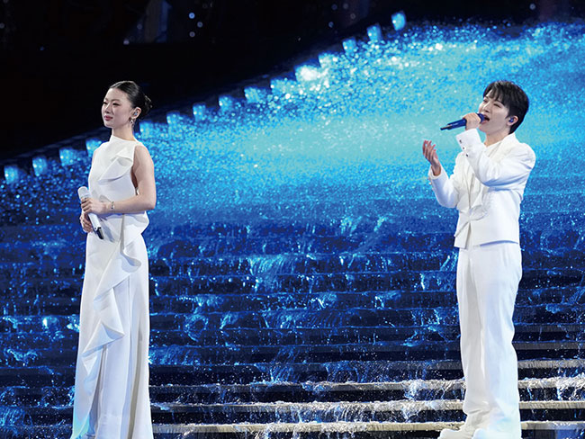 歌手周深、單依純合唱開幕式主題歌《天海一心》後,歷時約90分鐘的開幕式圓滿結束。