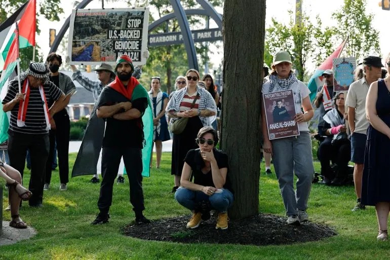 圖:從迪爾伯恩到海牙——抗議者悼念在加薩遇害的巴勒斯坦記者