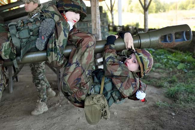 2025年9月25日,聖彼得堡軍事愛國節慶活動中,青年軍事愛國俱樂部的成員們正在參加競賽(法國媒體)